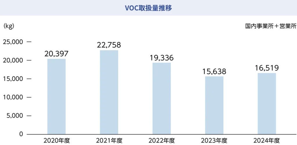 当社グループでは、工場で使用しているVOCの排出および飛散の削減施策を講じています。